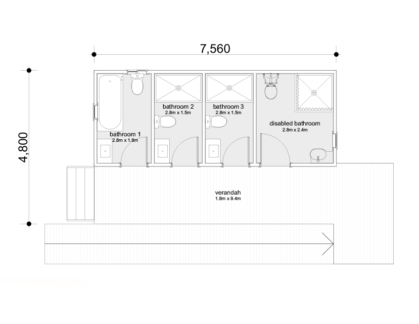 The four-bathroom option caters for people with special access needs with a bath/shower combination. Prices subject to change based on material cost fluctuations.