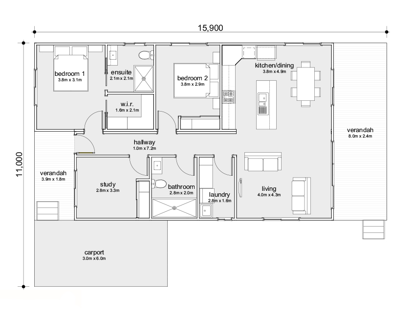 Note: Prices include GST, verandahs, delivery and installation to your postcode area. Excluded from these prices are connection of services, council fees and carport. Extra charges may apply if site access is difficult. Please contact us to discuss a customised fixed price contract that suits your needs.