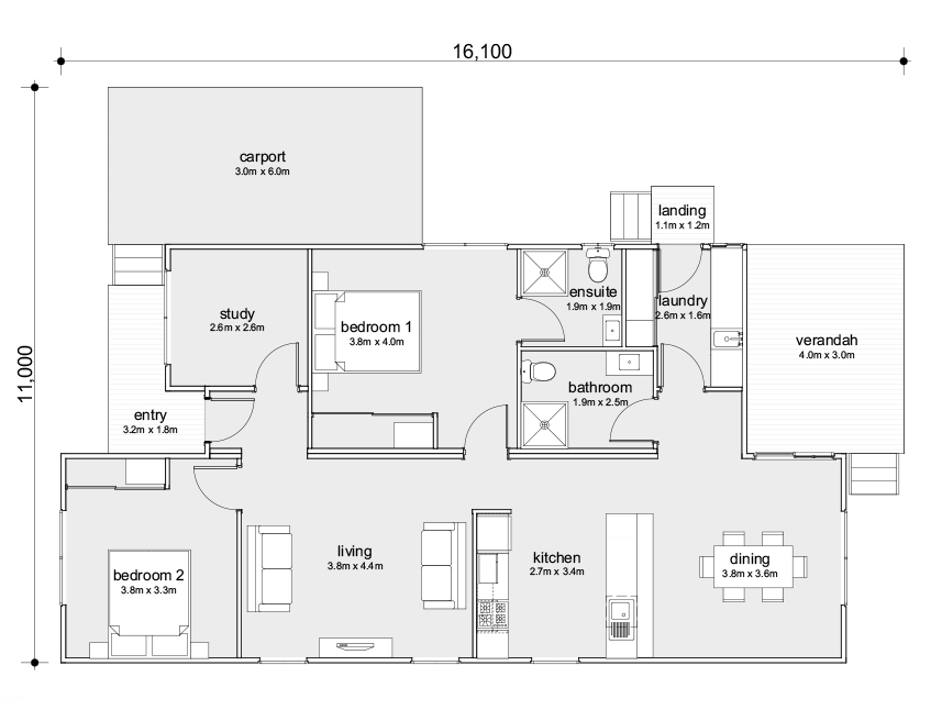 Note: Prices include GST, verandahs, delivery and installation to your postcode area. Excluded from these prices are connection of services, council fees and carport. Extra charges may apply if site access is difficult. Please contact us to discuss a customised fixed price contract that suits your needs.