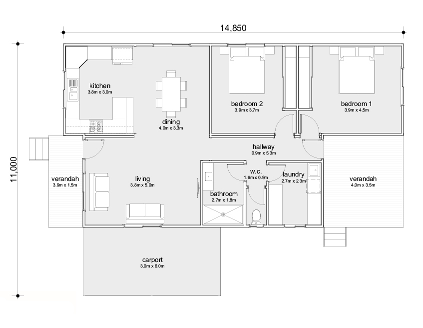 Note: Prices include GST, verandahs, delivery and installation to your postcode area. Excluded from these prices are connection of services, council fees and carport. Extra charges may apply if site access is difficult. Please contact us to discuss a customised fixed price contract that suits your needs.