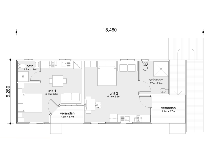 This accessible group accommodation features a simple studio room with a kitchenette, a bathroom, a built-in robe, and a compact deck. It is grouped with a second simple yet elegant studio room with everything you need to accommodate short or longer stays. Prices subject to change based on material cost fluctuations.